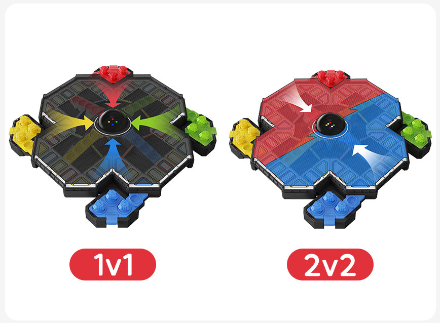 Partner up with a friend to challenge another team or engage in free-for all and race to the finish zone!
